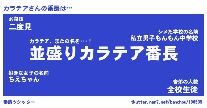 | 意味不明あだ名 | 『ペロリンカラテア』『永久保存カラテア』 |