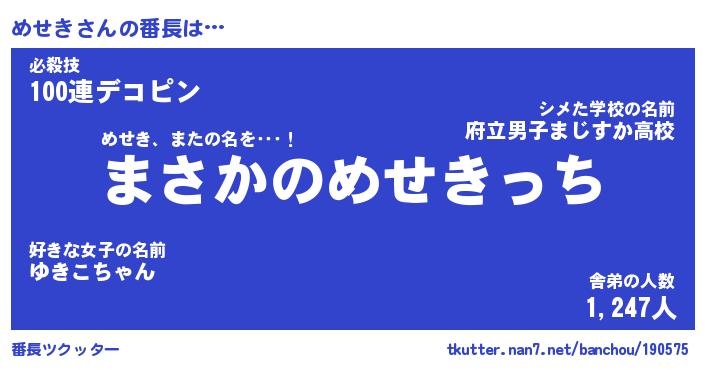 | 意味不明あだ名 | 『ペロリンめせき』『めせきフォーエバー』 |