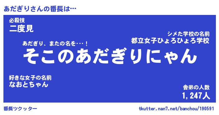 | 意味不明あだ名 | 『ペロリンあだぎり』『永久保存あだぎり』 |