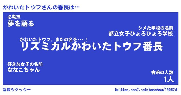 | ヒーロー風カッコイイあだ名 | 『スーパーカワイタトウフ』 |