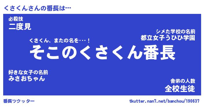 | ヒーロー風カッコイイあだ名 | 『スーパークサクン』『天弓騎士クサ』 |
