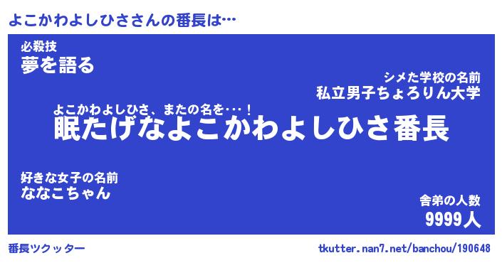 | 意味不明あだ名 | 『ペロリンよこかわよしひさ』 |