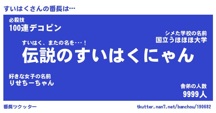 | 肩書あだ名 | 『すいはく店長』『すいはく国家主席』 |