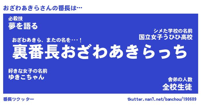 | 伝説のあだ名 | 『不死鳥のスナイパーおざわあきら』 |