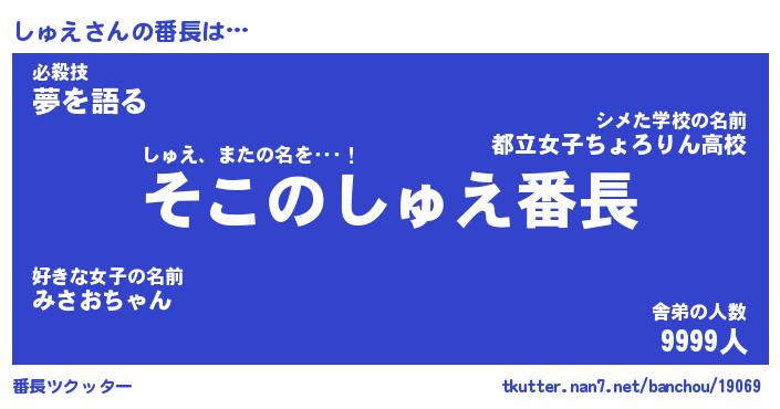| 伝説のあだ名 | 『不死鳥のスナイパーしゅえ』 |