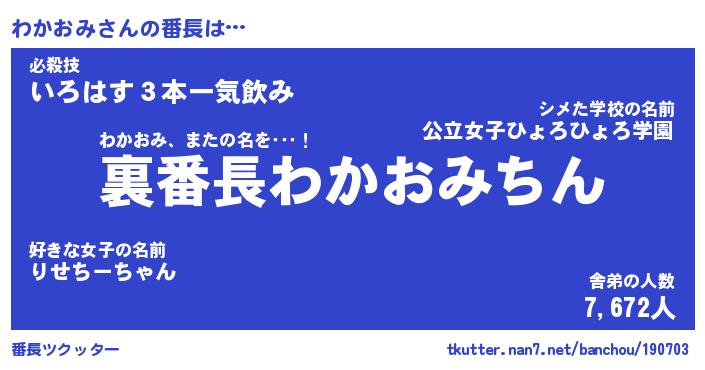 | 意味不明あだ名 | 『ペロリンわかおみ』『永久保存わかおみ』 |