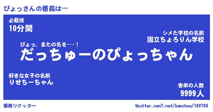 | ポケモン風あだ名 | 『ピョチュウ』『ピョッダネ』 |