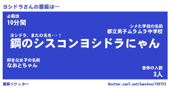 | 意味不明あだ名 | 『ペロリンヨシドラ』『永久保存ヨシドラ』 |
