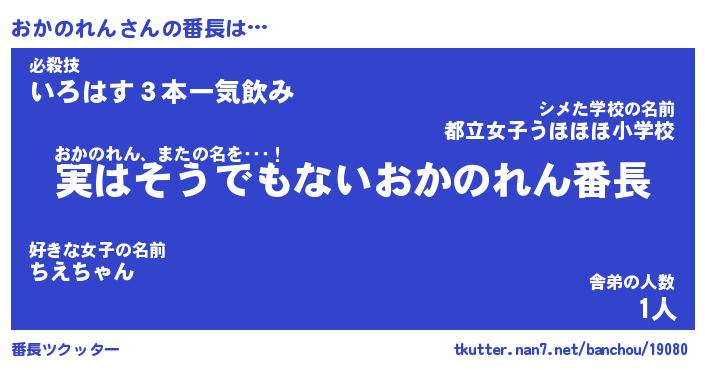 | 2回繰り返すあだ名 | 『おかおか』『おおかか』『いらいら』 |