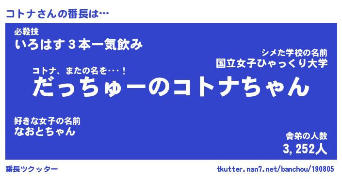 | 意味不明あだ名 | 『ペロリンコトナ』『コトナフォーエバー』 |