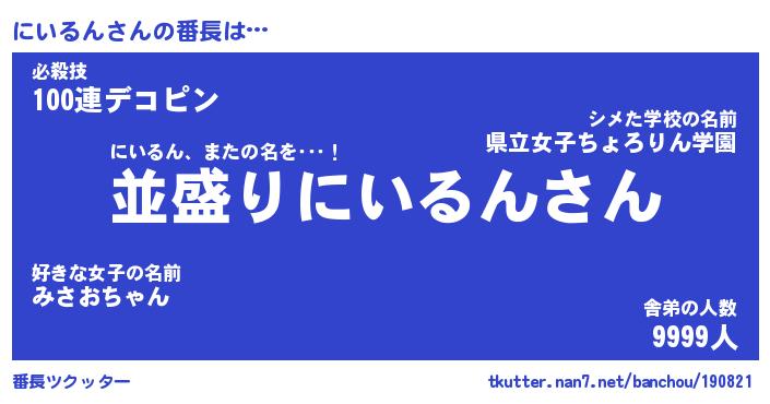 | 意味不明あだ名 | 『ペロリンにいるん』『永久保存にいるん』 |