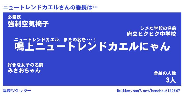 | ヒーロー風カッコイイあだ名 | 『スーパーニュートレンドカエル』 |