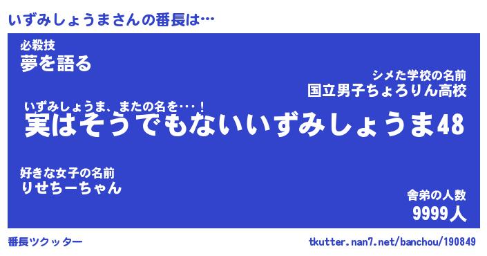| ピコ太郎風あだ名 | 『イコ太郎』『ピイ十郎』『イズ五郎』 |