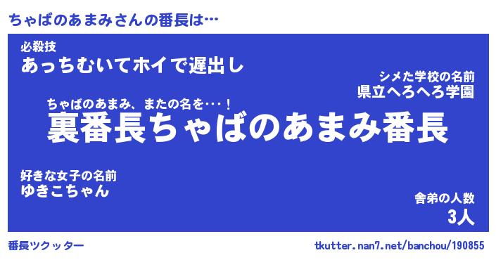 | 意味不明あだ名 | 『ペロリンちゃばのあまみ』 |