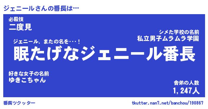 | ファンタジー風あだ名 | 『ジェフェル』『エターナルジェニールー』 |