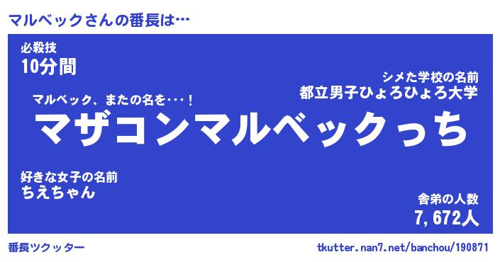 | ヒーロー風カッコイイあだ名 | 『スーパーマルベック』『炎刃騎士マル』 |