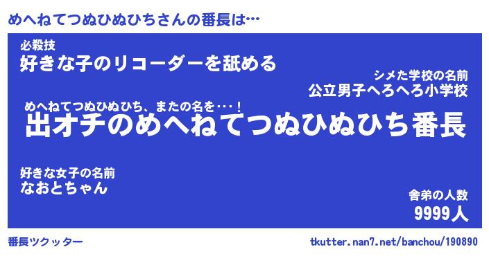 | 肩書あだ名 | 『めへねてつぬひぬひち店長』 |