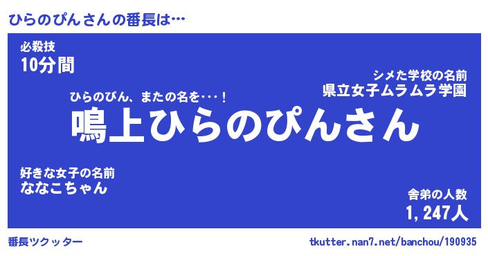 | ピコ太郎風あだ名 | 『ヒコ四郎』『ピヒ三郎』『ヒラ一郎』 |