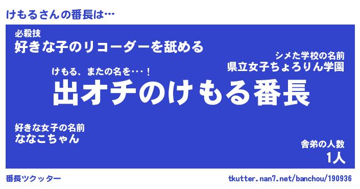 | ヘコむあだ名 | 『けもにゅー』『酢こんぶ』 |