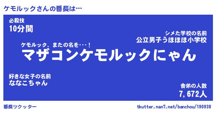 | ヒーロー風カッコイイあだ名 | 『スーパーケモルック』『炎刃騎士ケモ』 |