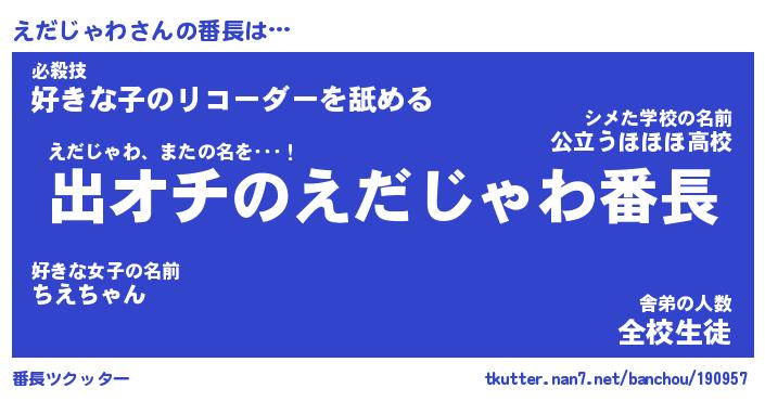 | 肩書あだ名 | 『えだじゃわ社長』『えだじゃわ大統領』 |