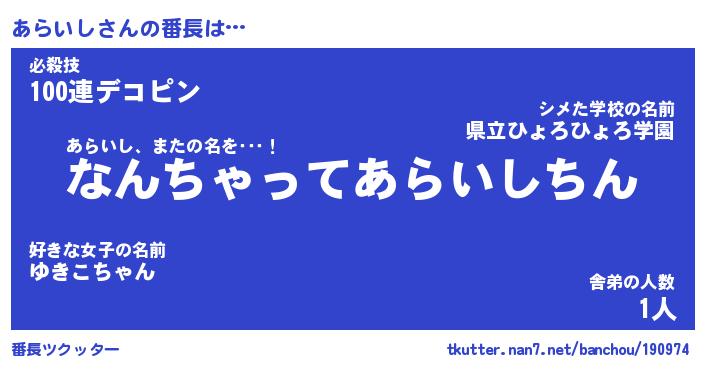 | 意味不明あだ名 | 『ペロリンあらいし』『永久保存あらいし』 |
