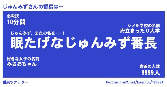 | ファンタジー風あだ名 | 『ジュフェル』『エターナルジュンミズー』 |
