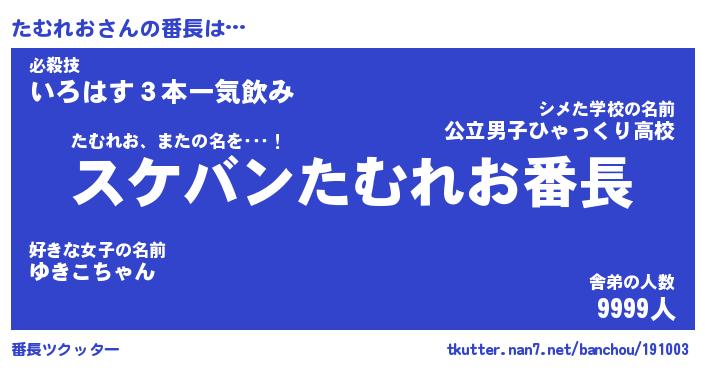 | 意味不明あだ名 | 『ペロリンたむれお』『永久保存たむれお』 |