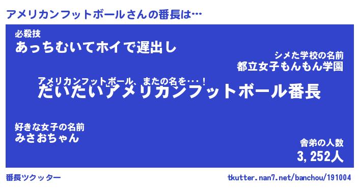 | 男性向けラノベタイトル風あだ名 | 『アメリカンフットボールの憂鬱』 |