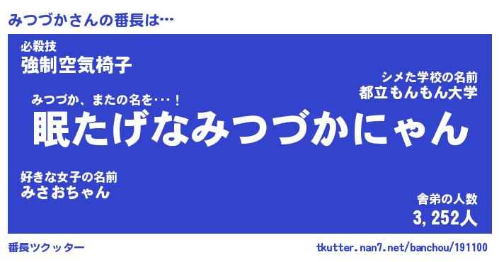 | ポケモン風あだ名 | 『ミツチュウ』『ミツヅダネ』 |