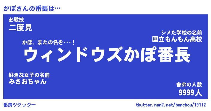 | 伝説のあだ名 | 『伝説のスナイパーかぽ』 |