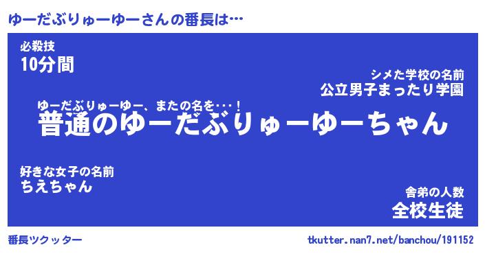 | ポケモン風あだ名 | 『ユーチュウ』『ユーダダネ』 |