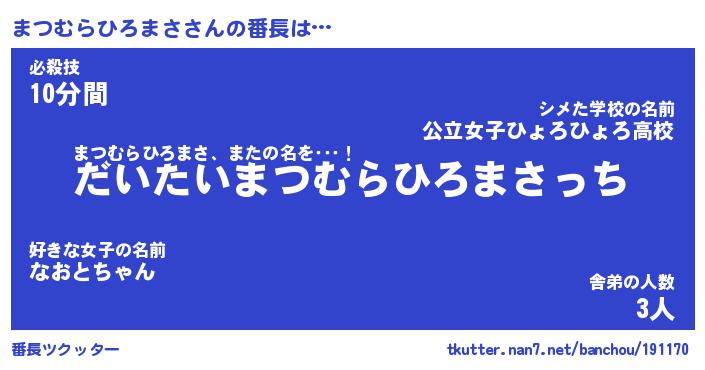 | 意味不明あだ名 | 『ペロリンまつむらひろまさ』 |