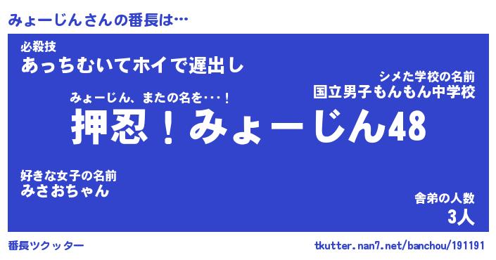 | ヒーロー風カッコイイあだ名 | 『スーパーミョージン』『天弓騎士ミョ』 |