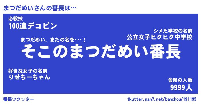 | ファンタジー風あだ名 | 『マツフェル』『エターナルマツダメイー』 |