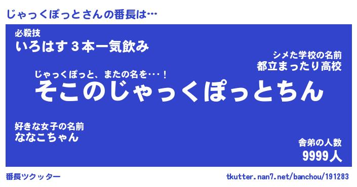 | ピコ太郎風あだ名 | 『ジコ八郎』『ピジ三郎』『ジャ四郎』 |
