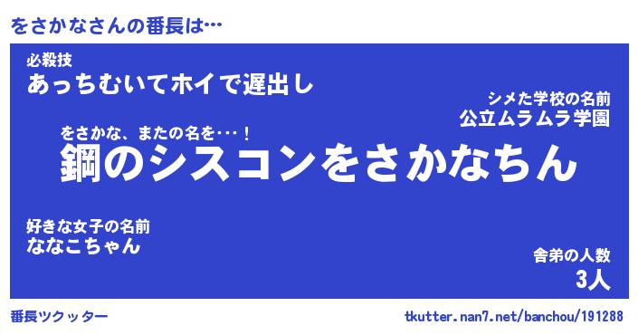| 意味不明あだ名 | 『ペロリンをさかな』『永久保存をさかな』 |