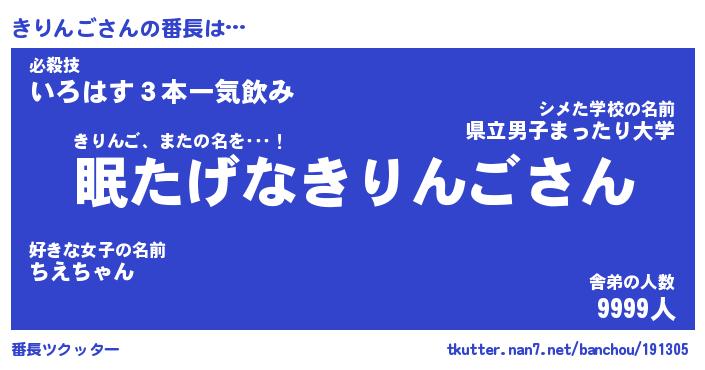 | 欧米人風あだ名 | 『マイケルきりんご』『ウサインきりんご』 |