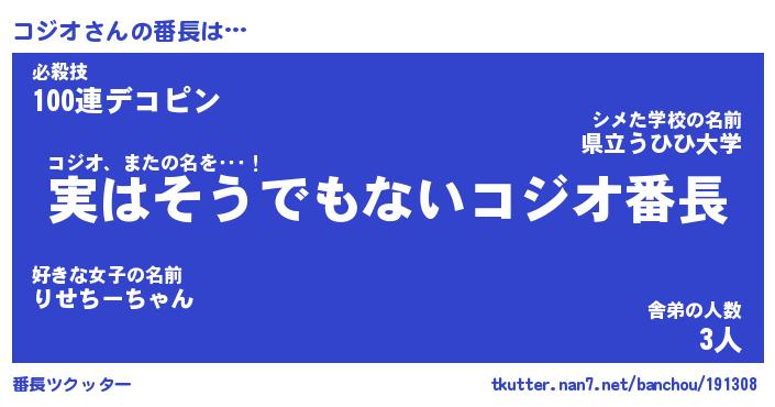 | ヒーロー風カッコイイあだ名 | 『スーパーコジオ』『ウルトラコジオマン』 |