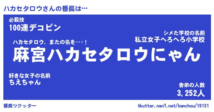| 欧米人風あだ名 | 『マイケルハカセタロウ』 |