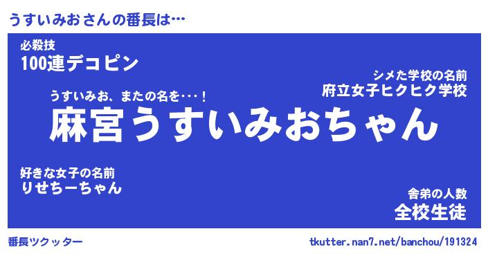 | ピコ太郎風あだ名 | 『ウコ一郎』『ピウ二郎』『ウス太郎』 |