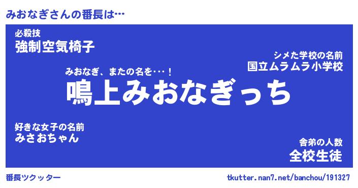 | ヒーロー風カッコイイあだ名 | 『スーパーミオナギ』『暗黒騎士ミオ』 |