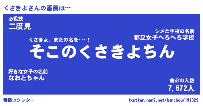 | 2回繰り返すあだ名 | 『くさくさ』『くくささ』『ぬるぬる』 |