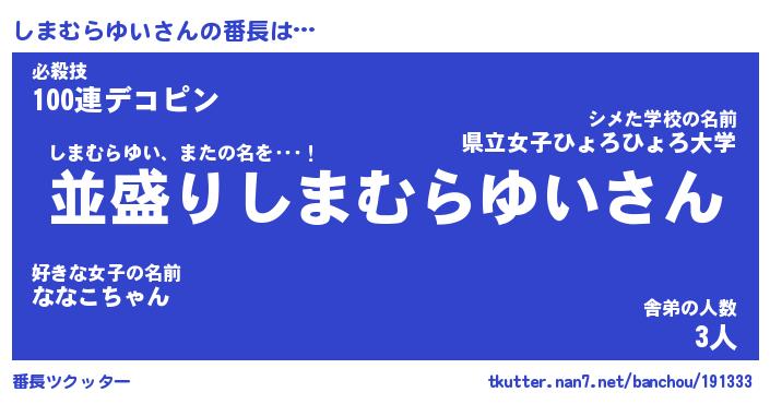 | ヘコむあだ名 | 『しまにゅー』『つくし』『しまを』 |