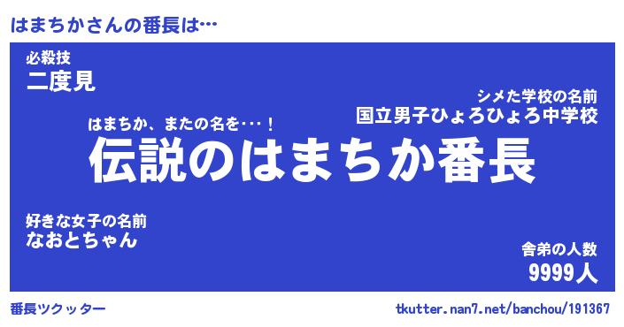 | 肩書あだ名 | 『はまちか社長』『はまちか総理大臣』 |