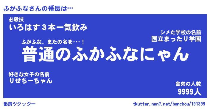 | ファンタジー風あだ名 | 『フカフェル』『エターナルフカフナー』 |