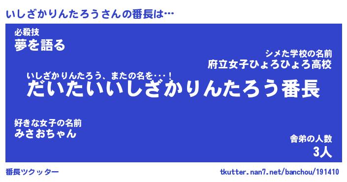 | ヒーロー風カッコイイあだ名 | 『スーパーイシザカリンタロウ』 |
