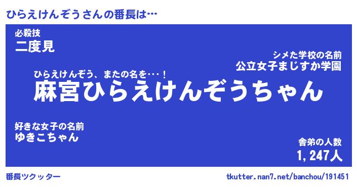 | ヒーロー風カッコイイあだ名 | 『スーパーヒラエケンゾウ』 |