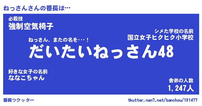 | 意味不明あだ名 | 『ペロリンねっさん』『永久保存ねっさん』 |