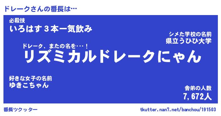 | 意味不明あだ名 | 『ペロリンドレーク』『永久保存ドレーク』 |